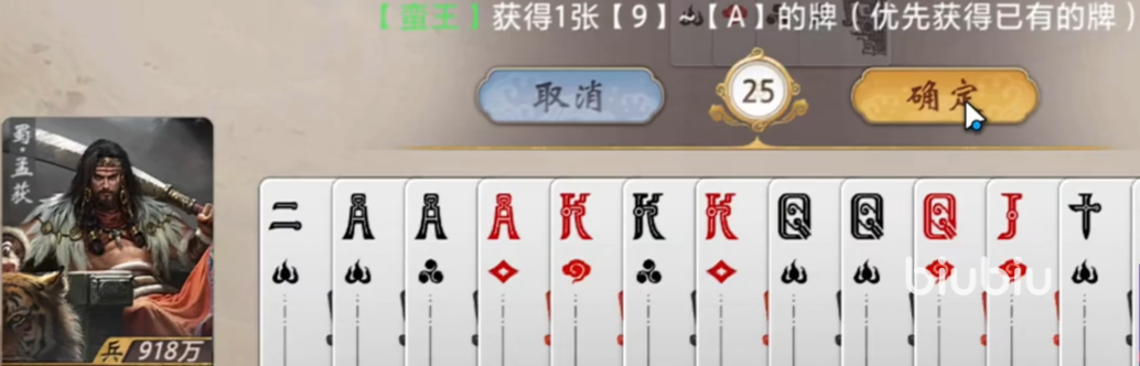 当技能累计触发满7次后,孟获进入第二阶段能力——可将当前手牌中点数最大的三张牌,自由指定一名玩家进行转移。该效果不区分敌我,既可用于强化己方核心武将的关键回合(如为其补充高点数牌以达成组合技),亦可在对手即将发动终结技前,通过移除其关键组件打乱战术部署。这种双向影响的设计,使孟获在团队战中拥有极强的战术支点价值。