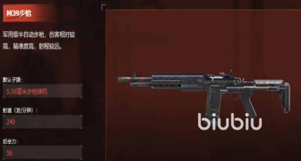 M39半自动步枪以高精度与高单发伤害见长,具备优异的远距离弹道稳定性。该武器在80米以上交战距离仍能维持较高命中率,配合瞄准镜可对中远距离目标实施有效压制与点杀。其设计逻辑强调“先敌发现、先敌开火”,适用于伏击、高地控场及战术拉扯等需要远程火力支援的作战形态。