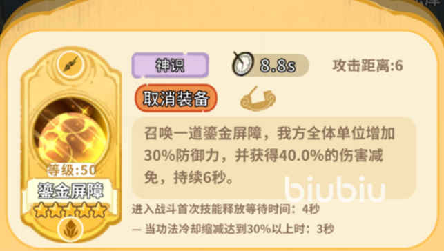 另一核心技能“鎏金屏障”可为全队提供30%防御加成与40%减伤效果,持续6秒,基础冷却18秒。若搭配阴阳调和、流云诀等减CD手段,可将冷却压缩至约9秒,实现约66%的技能覆盖率。该技能在敌方多目标集中爆发或残局阶段收益尤为突出,此时高额减伤的价值往往高于护盾的绝对数值;而在常规战斗中,面对分散、低频次的伤害时,“寒渊坠落”的稳定护盾则更具普适性与容错空间。