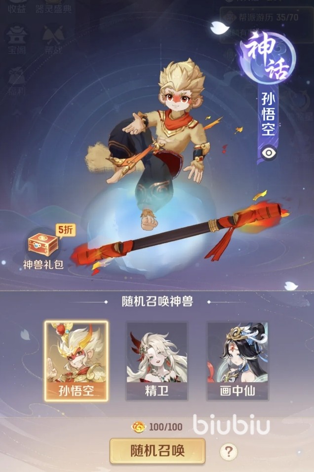 孙悟空属于“神兽召唤池”中的可兑换神兽之一,与其他两位神兽精卫、画中仙共同构成初始三选一召唤机制。玩家需消耗100个神兽精魄开启首次召唤,系统将随机发放其中一只。若未获得孙悟空,可使用额外20个神兽精魄进行第二次抽取——该补抽机制确保了获取路径的可控性。值得注意的是,神兽精魄可通过日常任务、副本通关、限时活动及签到奖励等多渠道稳定获取,零氪玩家平均14天内即可集齐100个,新服期间配合双倍产出活动,周期还可进一步缩短。