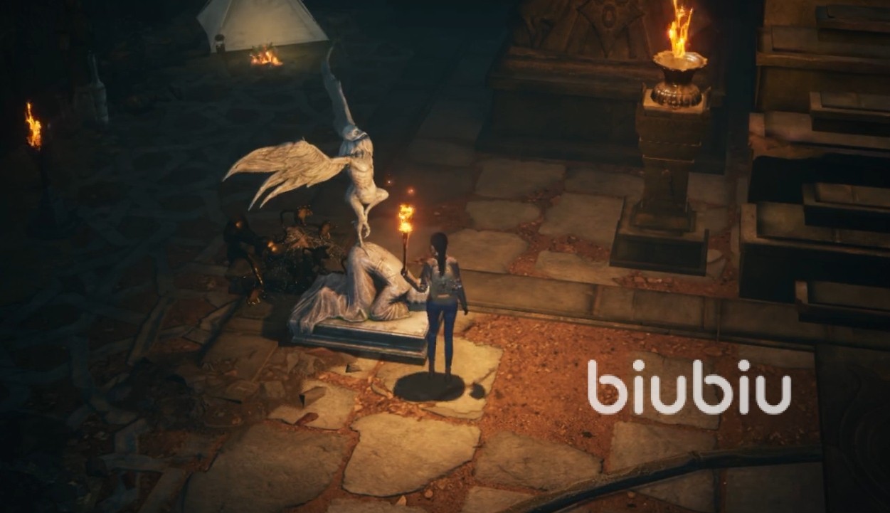 在营地完成状态恢复后,继续推进至巨型雕像所在大厅。触发剧情后,需与雕像旁四座小型石像交互,逐一将其姿态调整为“低头伏身”状态,以此启动隐藏机关。随后登上高台,与黄金座椅互动,触发CG动画——巨型雕像苏醒并转化为最终Boss。该场战斗难度适中,重点在于合理分配治疗资源:建议预留至少1–2个群体回血技能,在Boss释放范围伤害阶段及时使用。只要角色基础属性达标,配合走位即可顺利完成击杀。