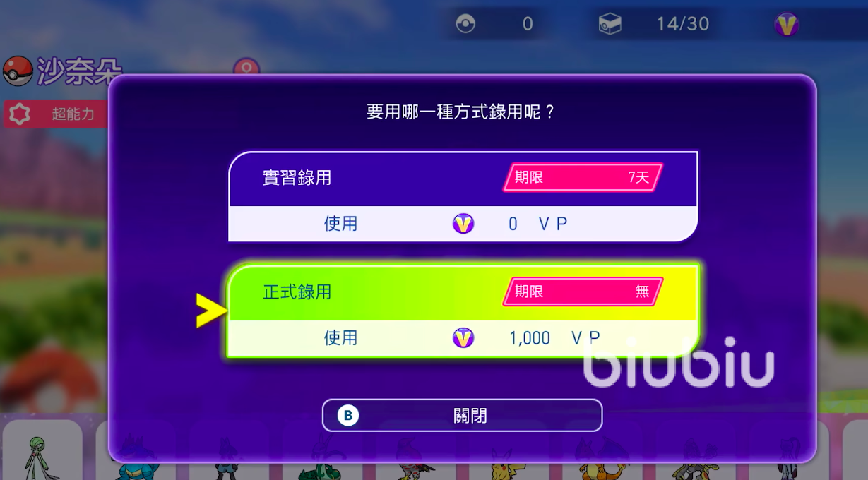 录用系统是构建队伍的第一步。玩家可通过该系统将目标宝可梦纳入作战序列。当前提供两种录用方式:其一是“习惯录用”,有效期为7天,全程免费,适合短期试用或技能测试;其二是“正式录用”,成功后可永久拥有该宝可梦,需消耗1000VP。完成正式录用后,需进入兑换系统完成编队操作,方可参与实战。此设计兼顾灵活性与长期投入,让资源分配更具策略性。