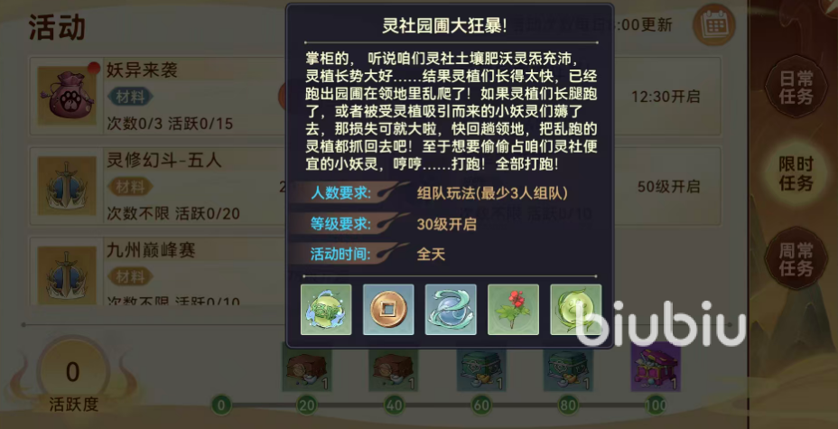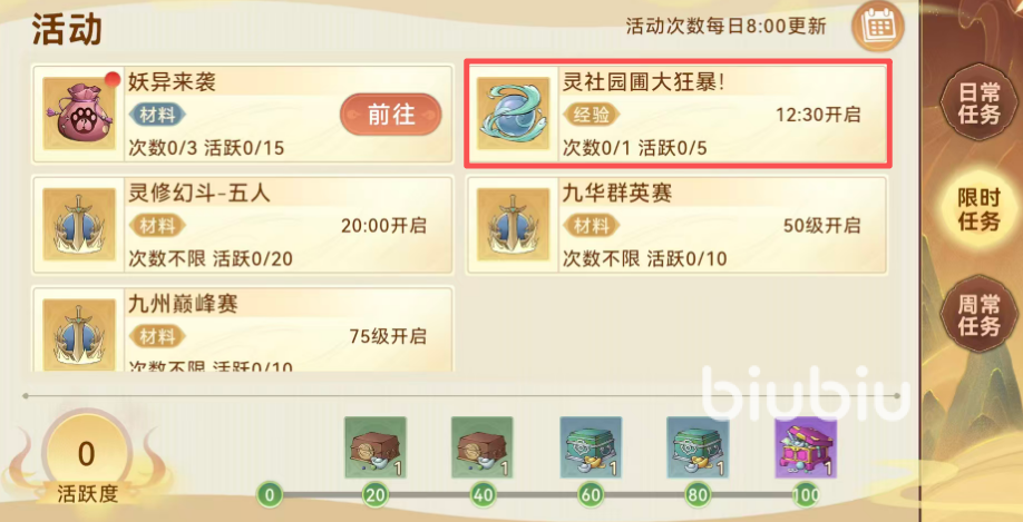 2026年03月12日 22:41 来源:小速在《妖错图》这款游戏中,灵社园圃大狂暴是一项高频、高回报的日常限时玩法。该活动每日固定开放,时间为中午12:30,玩家需在此时段内准时参与,错过则当日无法补入。与其他限时活动不同,它并非周期性轮换,而是稳定每日上线,具备明确的时间规律与可规划性。
