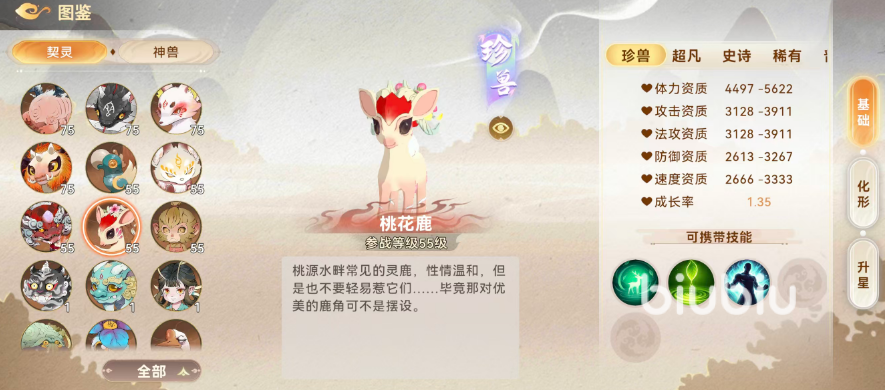 契灵配置方面,优先弥补队伍治疗与容错短板。推荐首选桃花鹿:可为3名友方恢复相当于其法术攻击72%的生命值,并为主目标额外赋予复苏效果;死亡后有约5%概率原地复活,复活即恢复全部生命,但全场仅限触发1次。若更倾向防御强化与复活双重保障,苍枢是更优解:无视目标10%法术防御,对4名敌人造成65%左右法术伤害,并有概率附加潮湿效果,降低目标5%防御;同时具备与桃花鹿相同的复活机制。副契灵可根据玩家现有资源自由选用,确保阵容完整即可。