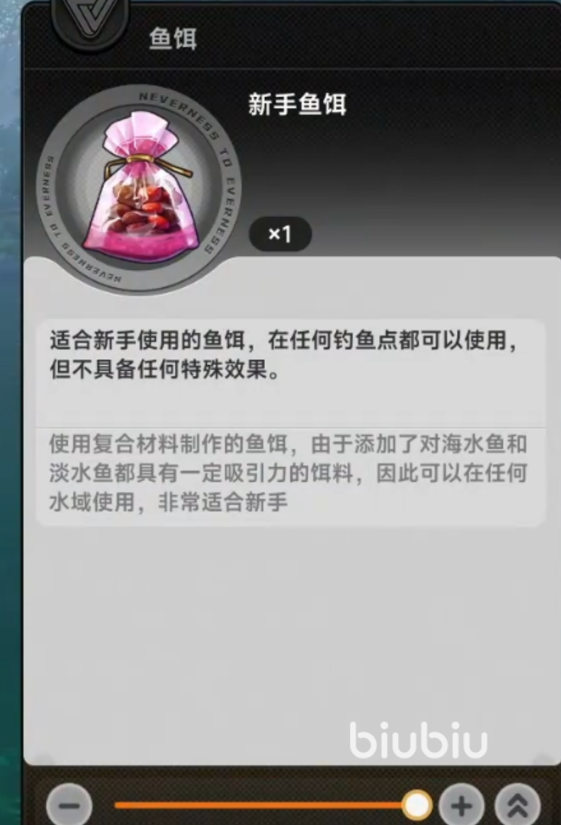 新手鱼饵是游戏初期默认解锁的基础饵料,具备全水域兼容性——既可在淡水区域(如青岚溪、雾隐湖)使用,也适配海水场景(如潮汐湾、珊瑚裂谷)。其配方为标准化复合型结构,融合多种基础诱食成分,无需辨识水体类型或鱼群分布即可生效。该饵料无属性加成,不提升稀有度权重,主要价值在于降低操作门槛:帮助新玩家快速熟悉抛竿节奏、收线时机与浮标反应等基础机制,同时完成初始水域地图探索。建议在等级1–15阶段集中使用,作为技能养成期的过渡方案。