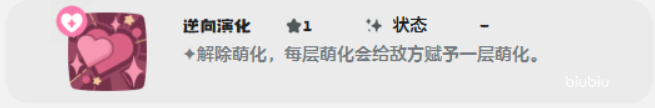 逆向演化是菊花梨最具策略深度的技能。其效果为:解除自身萌属性,并将萌化状态强制转移至指定敌方目标。被施加该状态的对手虽获得萌化外观,但实际无法享受任何增益,反而可能因机制冲突导致原有强化失效。此技能在对抗依赖多重强化堆叠的PVP阵容时尤为克制,常可实现战局逆转。