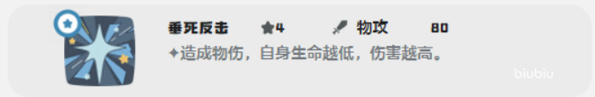 垂死反击作为战术补充技,适用于残局博弈。其伤害随自身当前生命比例降低而递增,在血量低于30%时触发显著增幅。该技能赋予菊花梨“低血反打”能力,避免因换宠中断节奏,在多段消耗战或对手集火压制场景下具备关键收割价值。