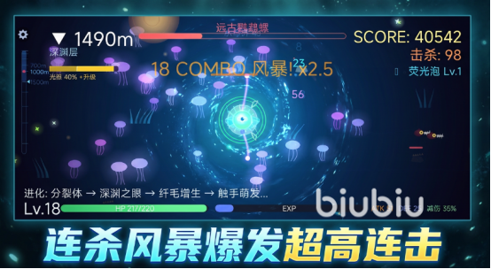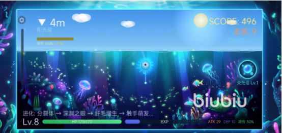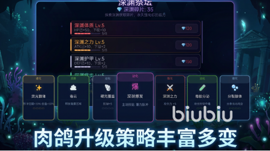 游戏构建了高度自由的多维进化树系统:初期可发展发光器官用于环境探测;中期可强化触手实现高爆发近战控制;后期则能增生甲壳结构,显著提升物理抗性与深海压强适应力。不同分支不仅改变视觉表现,更会触发底层规则变动——例如选择神经突触强化路线后,部分掠食者将主动规避玩家,而侧重代谢速率提升则可能吸引新型寄生类敌人出现。