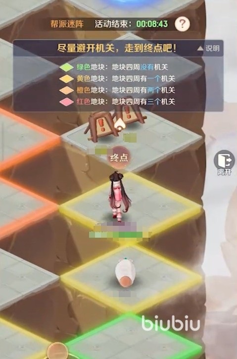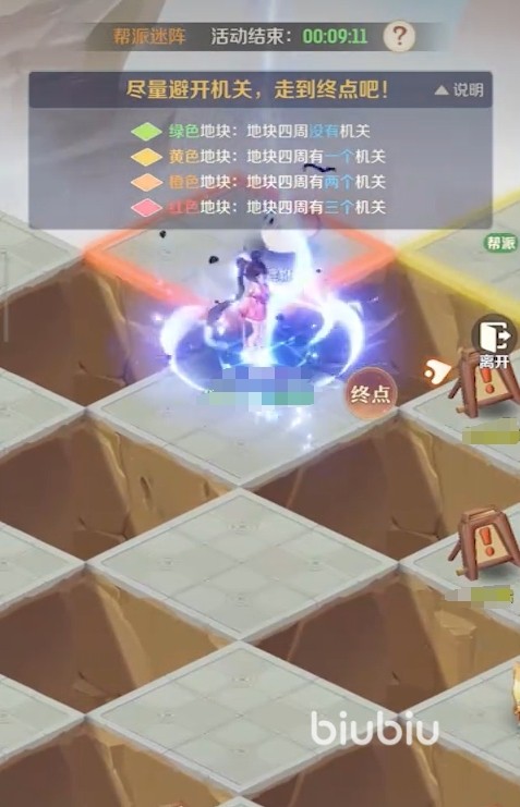 帮派迷阵每周仅在周一、周三、周五及周日的12:00和18:00两个时段开放。其核心机制借鉴经典逻辑游戏设计逻辑,玩家需依据地面格子颜色提示,推断相邻区域的安全状态,逐步规划通往终点的无险路径。具体判定规则如下:绿色格子表示其上下左右四个邻格全部安全;黄色格子代表四邻中恰有1个存在机关;橙色格子对应2个危险邻格;红色格子则意味着四邻中有3处埋设机关。需特别注意——每个格子仅与正交方向的四个格子相连,因此当玩家触发红色格子提示时,应立即折返,避免继续探索,否则必遭机关判定。