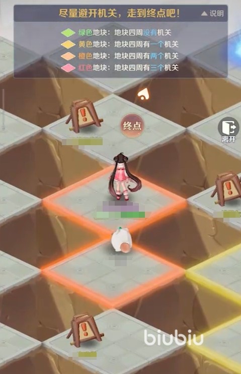 在玩法初期或低活跃时段,地图上警示标记数量有限,玩家需结合颜色逻辑主动验证路径。例如:站在黄色格子上,若向某一邻格移动后触发落雷,则其余三个邻格中仅有一个为危险格,剩余两个即为安全选项,可据此缩小试探范围。成功抵达终点后,系统将自动发放对应奖励,包括帮派贡献、稀有道具及限时增益效果。