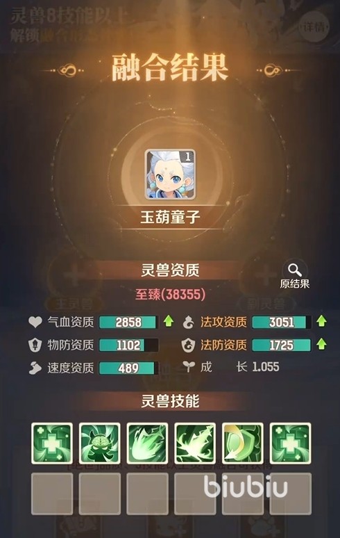 合宠存在严格准入门槛:主灵兽与副灵兽均须为绝世品级。此外,副灵兽的技能数量不得低于主灵兽当前已拥有的技能数。例如,若主灵兽当前拥有5个技能,则所选副灵兽至少需具备5个或以上技能,否则系统将禁止其作为胚子参与合成。合成完成后,主灵兽的资质数值与技能栏将即时更新,玩家需手动刮开奖励区域查看最终结果。