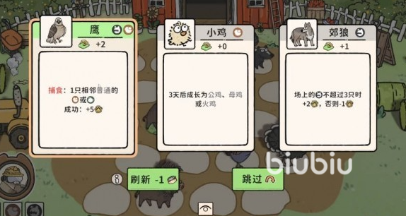 动物系统为核心玩法模块,全部160只生物划分为七大种族,各具专属特性。流派选择直接影响资源产出效率:新手推荐“养猪过渡流”,以野猪触发感染效果,辅以母鸡稳定金币收入,配合草地地形实现稳健发育;进阶玩家可尝试“灰狼捕食流”,利用灰狼捕食山羊快速升级,中期依靠老虎持续输出,节奏紧凑、爆发力强。