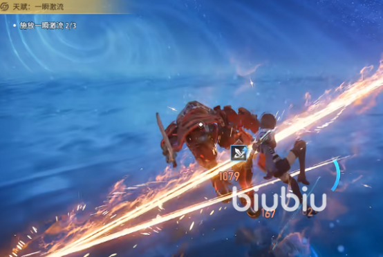 “一瞬激流”并非基础瞬发技能,其生效依赖明确的前置条件:角色需连续完成两段指定技能释放,此时界面将激活“普通攻击”按钮。点击该按钮即可触发派生技“破命击”,该动作会带来约0.6秒的短暂僵直,但若在此期间精准点击“普通技能”按钮,则可立即激活充能强化效果,实现能量快速回填,为后续连招提供持续输出支持。