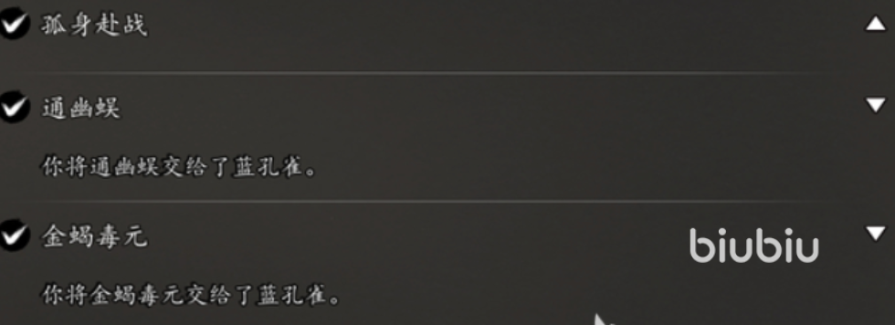 五灵心经并非初始可得,需满足两项前置条件:其一,地图进度须推进至苗疆区域并完成对应主线章节;其二,与NPC蓝孔雀触发对话后接取专属任务。该任务要求玩家集齐“五灵奇毒”中的任意三种——人面蛛、异种金蝎、通幽蜈。值得注意的是,五灵奇毒共含五种毒物,但任务仅需其中三者,具备一定容错空间。人面蛛与通幽蜈可通过常规支线任务获取,流程清晰,提示明确;建议玩家优先完成相关支线,确保物品完整后再统一提交,避免重复跑图。