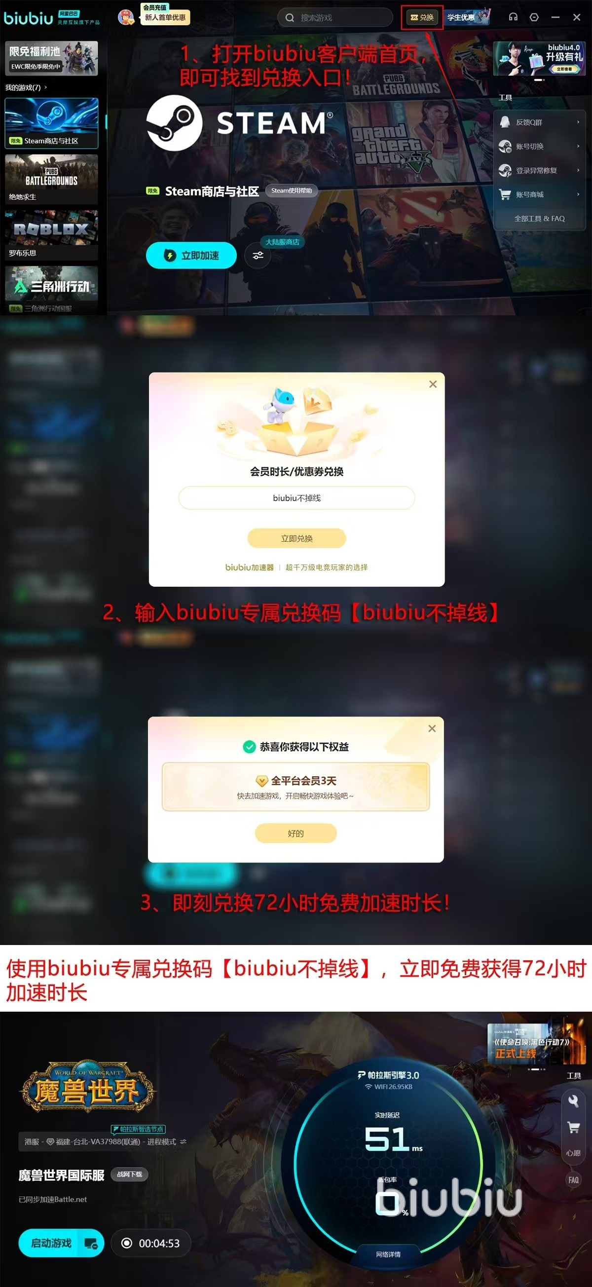 在畅享“至暗之夜”丰富内容的同时,建议使用综合性能最强的biubiu加速器保障网络稳定性。其搭载帕拉斯3.0引擎,由阿里巴巴旗下灵犀互娱提供底层技术支持。新用户注册即可领取24小时免费加速时长,叠加兑换码【biubiu不掉线】还可额外获得72小时,总计96小时免费体验权益。