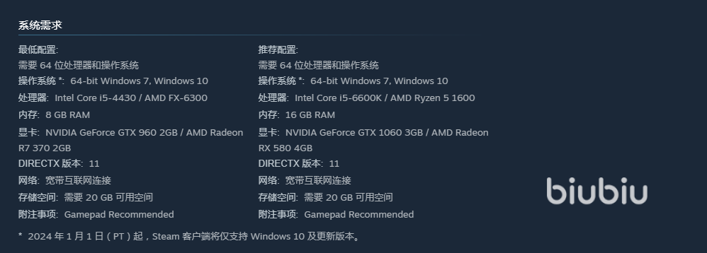 目前游戏已正式登陆Steam平台,并同步开放商店页面。官方明确公布了系统需求:最低配置需搭载Intel Core i5-4430处理器、NVIDIA GeForce GTX 960显卡,运行内存不低于8GB,硬盘可用空间需预留20GB。若追求更高帧率与更稳定的多人对战体验,推荐使用Intel Core i5-6600K或更高型号处理器,显卡升级至GTX 1060及以上,内存建议提升至16GB。