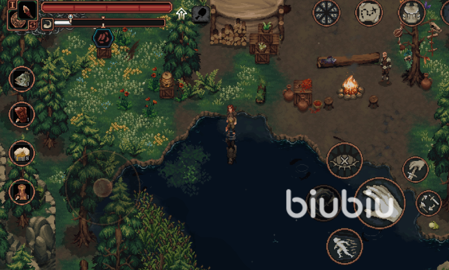 移动版本深度还原PC端核心体验,延续经典复古RPG风格。游戏摒弃传统任务指引标记,强调开放式探索机制——地图中隐藏大量支线、彩蛋与随机事件,每一次转角都可能触发未知遭遇。需特别注意野外环境中的动态威胁:野兽与敌对单位将无预警刷新,考验玩家的观察力与临场反应能力。