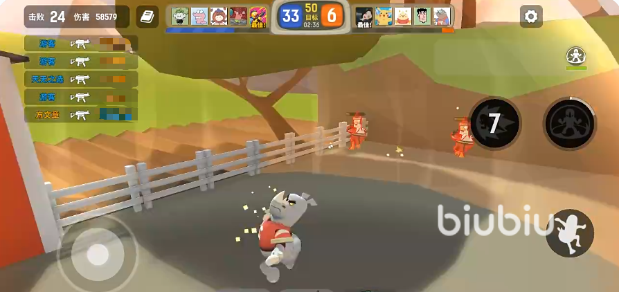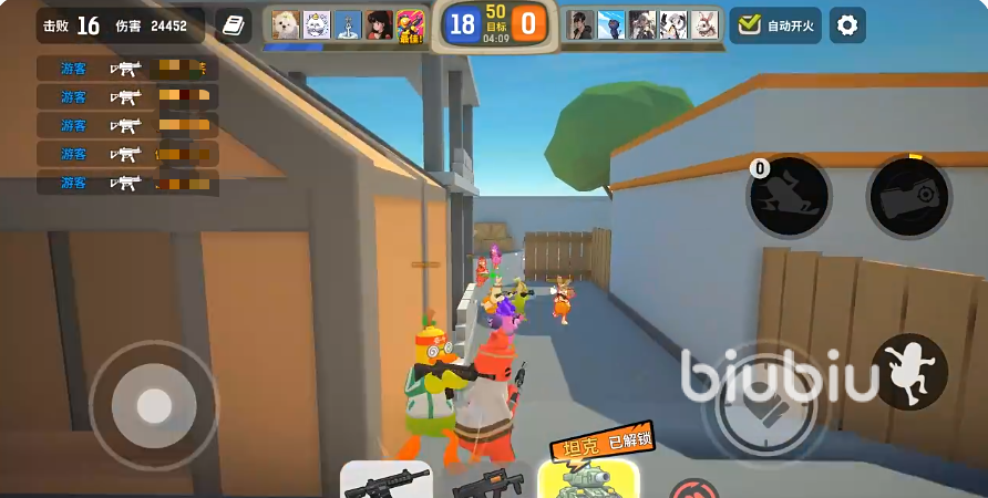 开局前需选择一名动物形象角色,每位角色拥有差异化基础属性与专属主动技能。进入战场后,界面底部常驻武器栏支持实时切换,已解锁武器均可调用,包括但不限于突击步枪、战术手枪、高倍率狙击枪、榴弹发射器、高压电击枪及爆裂枪等类型,不同武器适配近中远距离作战需求。