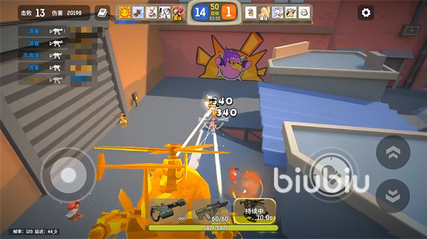 游戏采用4人同图竞技模式,地图为结构紧凑的箱庭式3D场景,空间层次丰富且掩体密集。单局时长控制在3至5分钟之间,复活点分布广泛、刷新间隔短,死亡惩罚极低,强调高频对抗与即时响应。团队协作是胜负关键,沟通配合、位置轮换与集火策略直接影响战局走向。