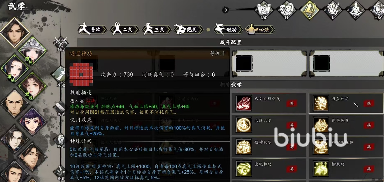 该心法呈现显著的阶梯式成长特性。升至五层时,招式附带“气散星辰”效果,可强制削减敌方集气值,并叠加散功(降低内力恢复效率)与滞气(延长技能冷却)双重负面状态;突破十层后激活终极机制:自身真气上限提升30%,每次命中目标额外提高集气速度与真气回复速率,同时持续抑制敌方真气积累效率。这种“强控+续航+反制”的复合能力,使其既能主导单挑节奏,亦可在团队战中承担关键破阵与节奏调度职能。