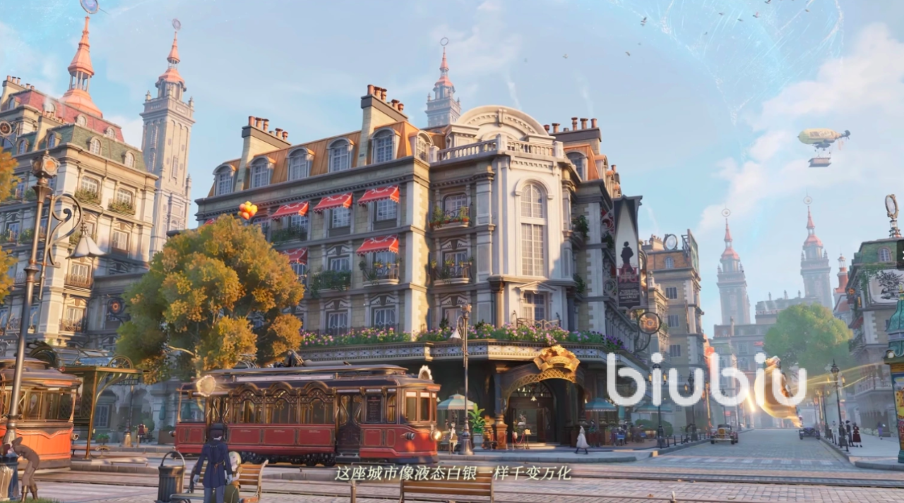 《白银之城》的3分钟宣传视频迅速引发玩家关注,而10分钟实机演示则进一步展现其内容深度。作为一款二次元风格的开放世界ARPG,本作创新采用“反皮套”角色设计逻辑,打破传统二游审美范式。美术层面深度融合英式浪漫气质与工业时代视觉语言——复古砖石街道、运行中的有轨电车、维多利亚式建筑细节共同构建出极具辨识度的城市风貌。