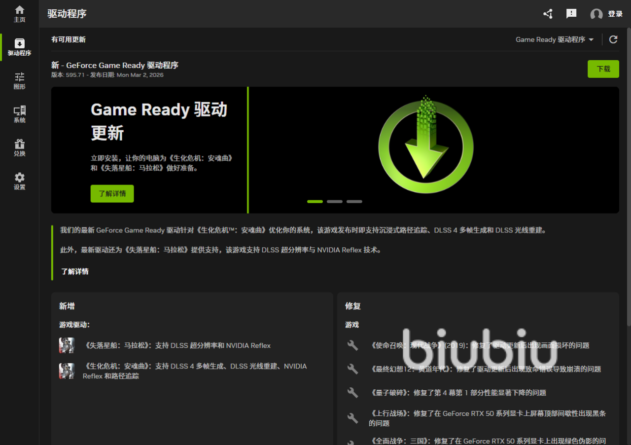 新游戏的引擎调试对显卡驱动来说都需要适应过程,老版本的显卡驱动没法第一时间跑出原有的性能,有些同学可能刚满足最低配置要求,但因为新游戏显卡驱动需要同步升级,原先最低要求3060可能后面就需要4060,若是一直闪退先卡N卡APP里面把老驱动卸载然后都重新下载,始终保持驱动推荐更新是最新的状态下,要是自己的配置没问题且性能还溢出的话,就得考虑开启业内综合性能最强的biubiu加速器来优化一下。
