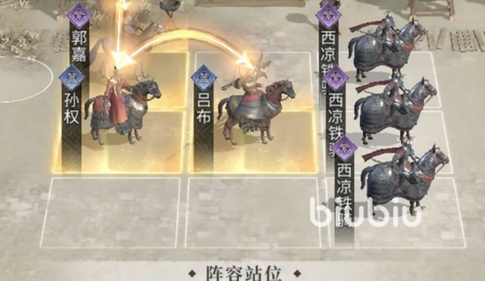 站位设计上,该阵容摒弃传统依赖吕布单核追击的模式,采用更均衡的梯队配置:减少吕布的独立追击位,转而赋予郭嘉与孙权协同参与输出循环的机会。此调整虽在初期降低爆发上限,但大幅提升容错率——即使某位输出单位被率先击破,剩余成员仍可维持完整作战链条。尤为关键的是,郭嘉完成觉醒后将解锁核心保命技:可为任意一名队友抵挡一次致死伤害,并附加持续增益状态。该技能在中后期高强度对抗中往往成为逆转战局的关键支点。