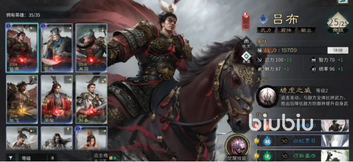 技能装配遵循角色职能划分:吕布与郭嘉作为主力输出,优先配置高倍率单体或群体伤害技能,重点提升每回合的数值比拼触发收益;孙权则侧重生存向被动技能,如减伤、回血、免疫控制等,确保其在战场中长期存活,持续提供团队增益与压制效果。