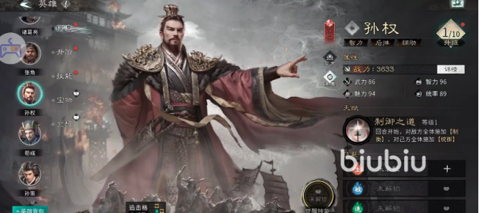 该阵容以孙权为战术中枢,承担全局增益与敌方压制双重职能。其核心机制在于通过技能持续提升己方全体基础属性(包括武力、谋略、统率等),同时削弱敌方对应数值。值得注意的是,孙权需优先突破至蓝色品质——此阶段将激活关键被动效果:当己方在数值比拼中获胜时,不仅可强化增益叠加效率,还将对目标施加高额附加伤害。随着回合推进,该滚雪球效应显著放大,逐步形成数值与输出的双重压制优势,使对手难以组织有效反击。