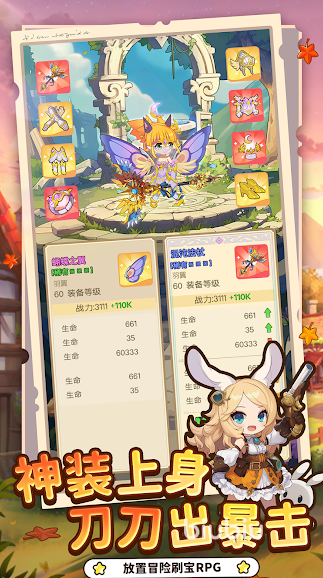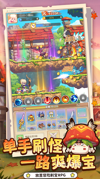 游戏构建了一个以“追寻彩虹尽头力量”为主线的轻叙事世界。玩家从新手村庄启程,逐步解锁多个主题区域,每个场景均配备差异化怪物配置与环境交互机制。离线状态下角色仍可自动积累经验值,并产出基础装备与道具。掉落反馈采用高亮光效+粒子提示,增强收集正向反馈,营造轻松愉悦的游戏氛围。