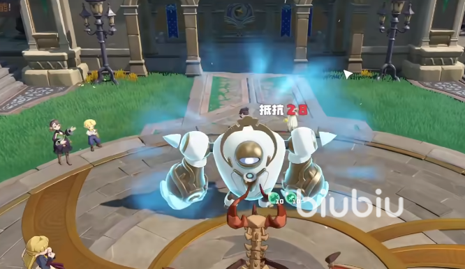 方方则定位为剧情向辅助型机械精灵,虽基础战力略逊于圣剑骑士,但在主线推进与特定关卡解谜中具有不可替代作用。其建模由多个几何方块组合而成,手持两个方形像素气球,整体风格极具辨识度。获取流程简洁友好:前往“商业街”场景,在街角位置与方方互动并接取日常任务;每日提交指定材料(如齿轮碎片、能量结晶等)完成交付,累计3天后解锁封印仪式;随后前往“远古祭坛”执行解除禁锢步骤,最终成功收服该宠物。