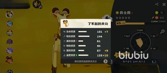 首推搭档为爵士鹿。其基础属性达120+速度与110+物攻,是当前版本公认的高机动物理输出单位。完成首领进化后,配合被动“蓄电池”,每次登场均可使物攻提升20%,支撑多轮返场作战。培养时推荐选用开朗性格,获得10%速度加成,在抢夺先手权方面具备天然优势。