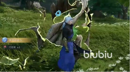 其中,河道匿灵最具辨识度与操作挑战性。其常态表现为静止树桩,表面浮现蓝色灵宝标识。该类灵体具备回避机制:角色一旦靠近,便会迅速隐匿并消失,无法通过常规接近方式采集。必须使用远程攻击手段触发交互——例如伽罗蓄力普攻精准命中树桩上的蓝色灵宝,方可激活采集状态。成功打击后,玩家可安全靠近拾取,获得对应资源。