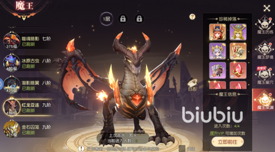 魔王梦境则侧重单人深度体验,每日开放2次挑战机会,同样支持会员加购次数,并于每日零点统一重置。值得注意的是,该副本具备容错机制:中途退出或挑战失败均不扣除当日次数,便于玩家反复调试阵容与操作策略。