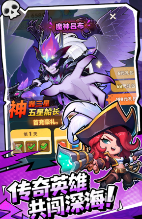 阵容构建由四大模块组成:船长、神器、海兽与宝石。其中船长属性需与主养神器元素保持一致;神器分“绝世”与“至尊”两种品质等级;宝石搭配强调同元素套装激活——仅当全部宝石均为同一元素时,方可触发额外羁绊效果;海兽选择同样需匹配船长所属元素,品质并非唯一标准,元素契合度才是战力释放的关键前提。此外,游戏内置智能离线巡航系统,即使玩家离线,也能持续积累金币及稀有养成物资,真正实现“轻松长线养成”。