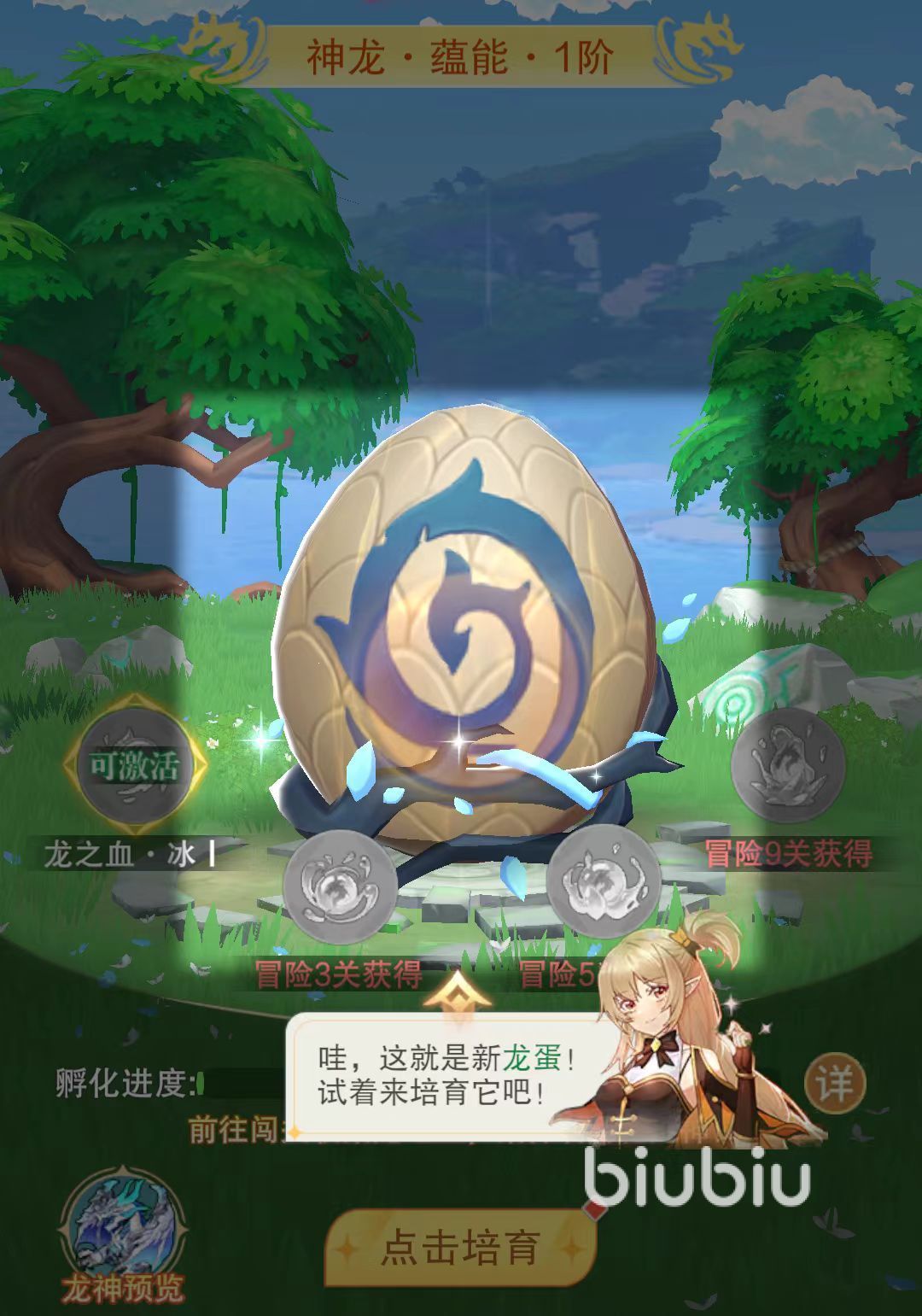 夺回龙蛋后,玩家与其发生未知能量共振,触发龙仔孵化机制。后续需通过挑战各类关卡、击败指定Boss获取“龙之血”,并将该资源持续注入龙蛋。此外,常规怪物击杀亦有概率掉落“龙血精华”,二者均为孵化与成长阶段不可替代的核心材料。由此,巨龙完全由玩家自主培育,从初生到成熟,逐步成长为具备独立战斗能力的共生伙伴。