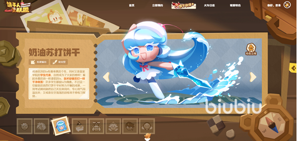 奶油苏打饼干:高稀有度近战主力,水属性专精输出者。普攻与技能均以高爆发近身斩击为特征,配合水属性克制机制,在松饼塔特定楼层(如魔物密集的中层区域)可实现伤害倍增,是应对群怪压力最直接有效的物理核心。
