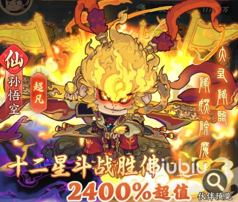 孙悟空机制简洁、成长路径清晰,技能“破云一击”具备高额单体伤害与灵力恢复效果;终极技“斗战胜佛”可消耗全部灵力进入变身状态,期间获得护盾、攻击提升,并持续释放“业火”进行范围灼烧。在3星与4星品质强化后,其单体爆发能力显著跃升,成为多场景下的主力输出选择。