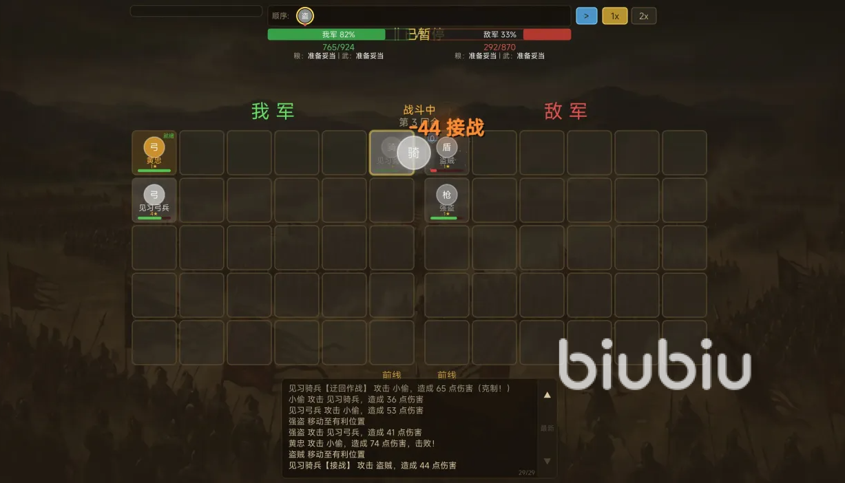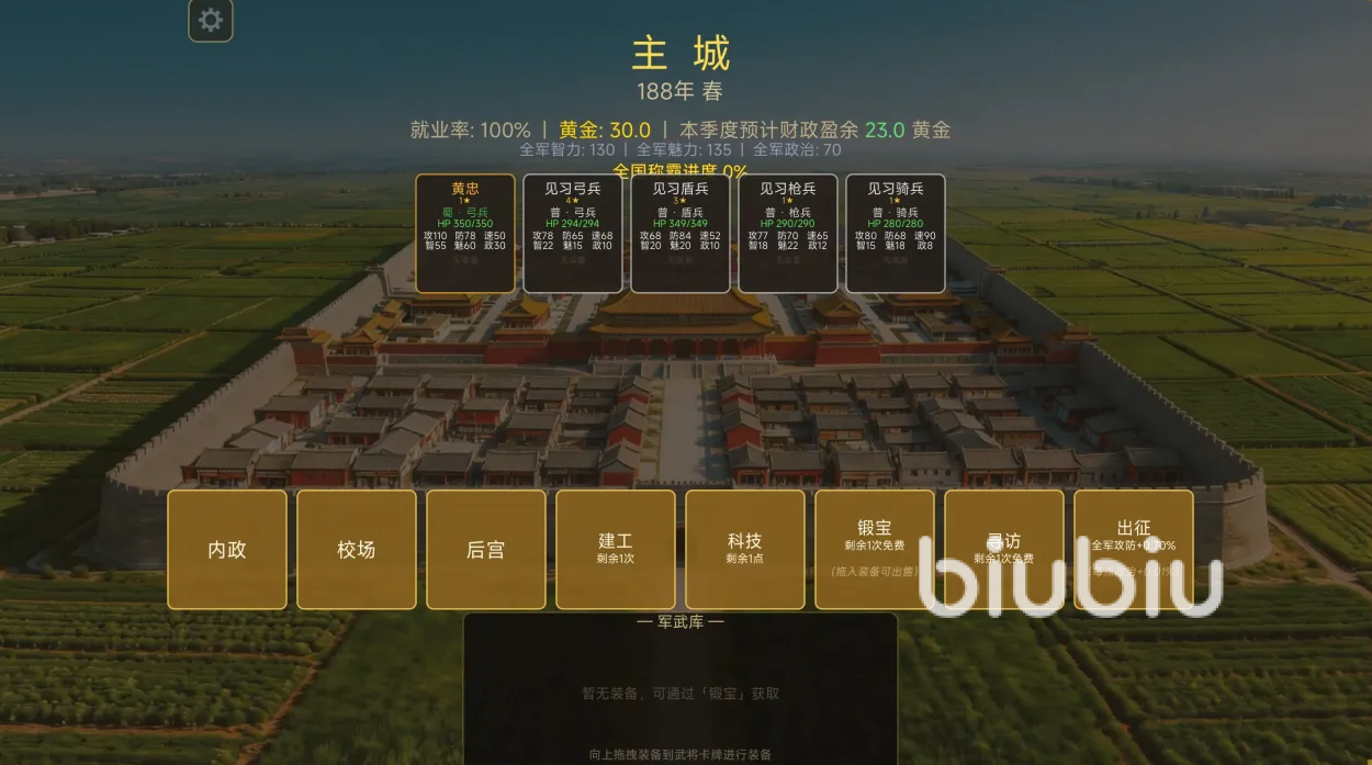 该游戏采用“经营驱动战斗”的双轨设计,城池发展、资源调配与武将养成构成底层支撑,而棋盘式实时演算战斗则作为胜负判定的核心环节。玩家需通过合理布阵、兵种克制与行动序列规划,在六边形网格棋盘上完成战术推演。相比重度特效呈现,本作更强调战前决策质量与文字战报的信息密度——每场交锋均以精准播报形式还原攻防细节,对策略理解力与运营耐心提出更高要求。