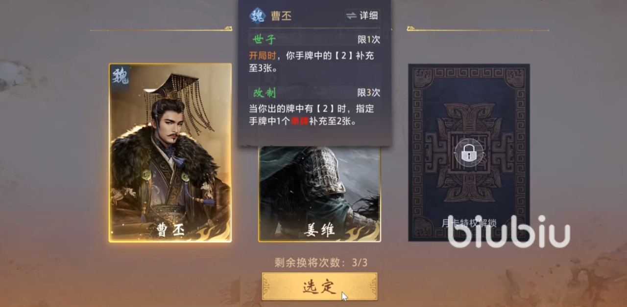 曹丕属于T1强度武将,通过连续完成7日登录任务即可免费获取。其核心技能为开局固定获得3张数字“2”;出牌阶段打出任意一张“2”,可将己方任意一张单牌临时转化为对子形态。该机制赋予极强的场面控制力,在常规对局中可有效打断对手连招节奏,构建稳定压制链。