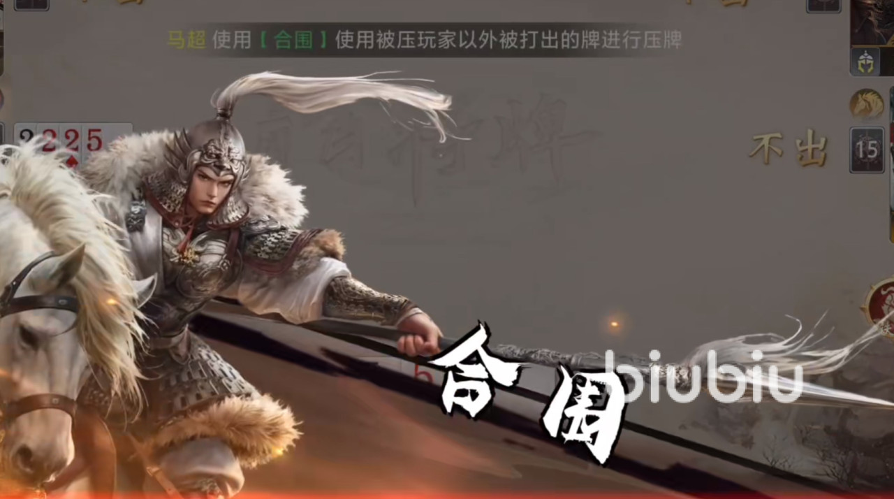 马超为T1梯队中资源投入最高的武将,需消耗1888金饼于商店购买。技能机制包含双重特性:其一,自身手牌不可被任何对手技能获取;其二,可自由组合他人手牌参与出牌,具体规则为“压1张则获得对方2张”或“压2张则获得对方1张”。该设计使其兼具进攻主动性与防守反制能力,尤其针对依赖抢牌机制的武将(如吕蒙)具有天然克制效果。