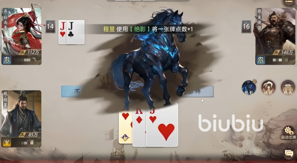 绝影坐骑提供单牌点数+1效果,但被强化的牌无法参与构成炸弹(含常规四张同点炸弹、万能牌组合炸弹及马超技能生成的特殊炸弹),且对拥有标记类技能的武将(如带“标记”关键词的主动技)可能产生干扰,使用前务必评估当前手牌结构与对手状态。