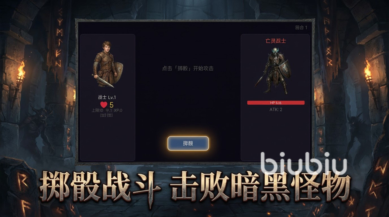 战斗采用差异化骰子填充机制:玩家需投掷并分配红、蓝、绿三色骰子至对应属性格。若任一颜色未填满,则触发反伤判定;若全部填满,则对目标造成全额属性伤害。该机制要求玩家在资源有限前提下,预判敌方行为模式、权衡输出节奏与生存容错,形成兼具操作精度与战术规划的双重要求。