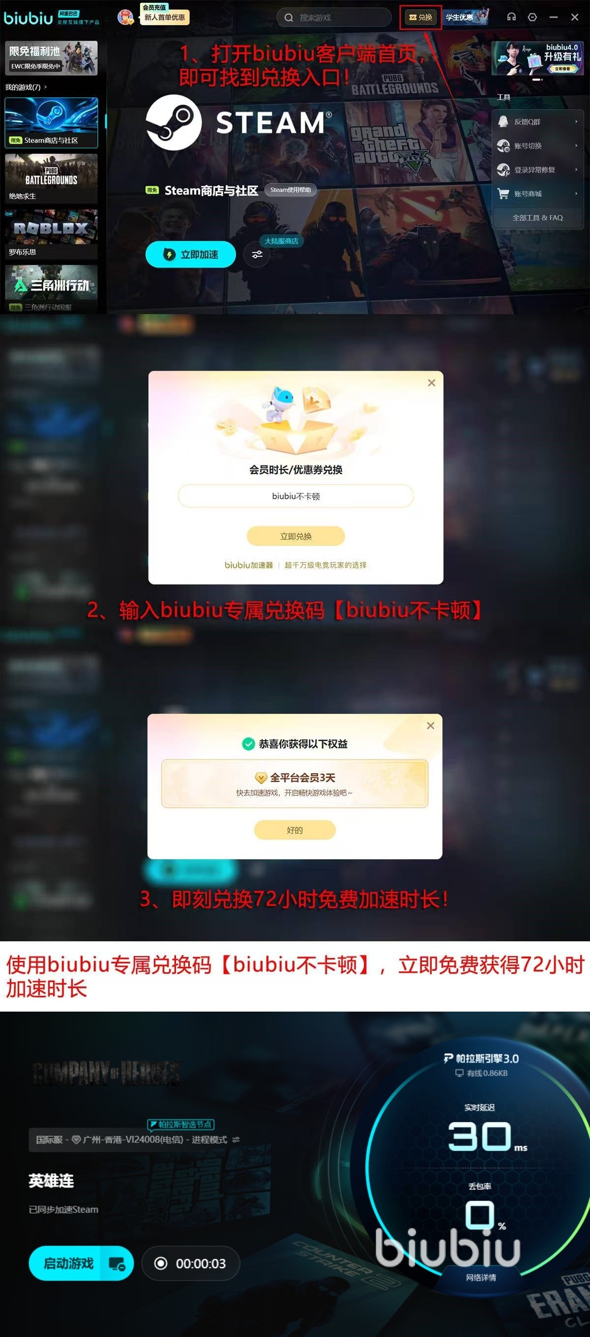 该方案已通过职业级场景验证:PUBG前世界冠军XDD参与联合压力测试,在连续72小时高强度对抗环境下,确认biubiu可维持帧率稳定、指令响应无断连。新注册用户可免费体验24小时全功能加速服务;输入口令“biubiu不卡顿”,还可额外领取3天高级加速时长。