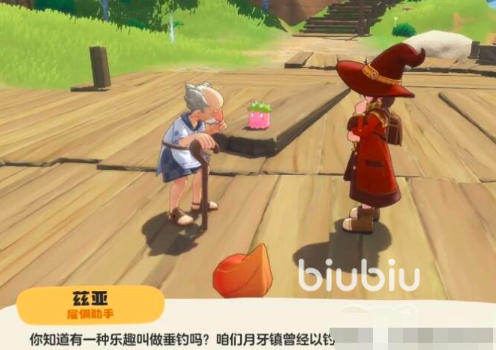 任务起点位于月牙镇码头。抵达后,与NPC魔法师兹亚对话即可触发钓鱼系统教学。首次尝试会因鱼饵不匹配而失败,这是必经流程,无需重复操作——系统将自动记录并推进后续环节。完成引导后,请打开背包,选用【海神花】作为初始鱼饵进行垂钓。成功上钩后,将随机获得【果实道具】或【双灯鱼精灵】。若获得双灯鱼,则表明当前阶段需切换鱼饵:下一步必须使用【伊贝尔的头发】,方可开启主线关键线索。