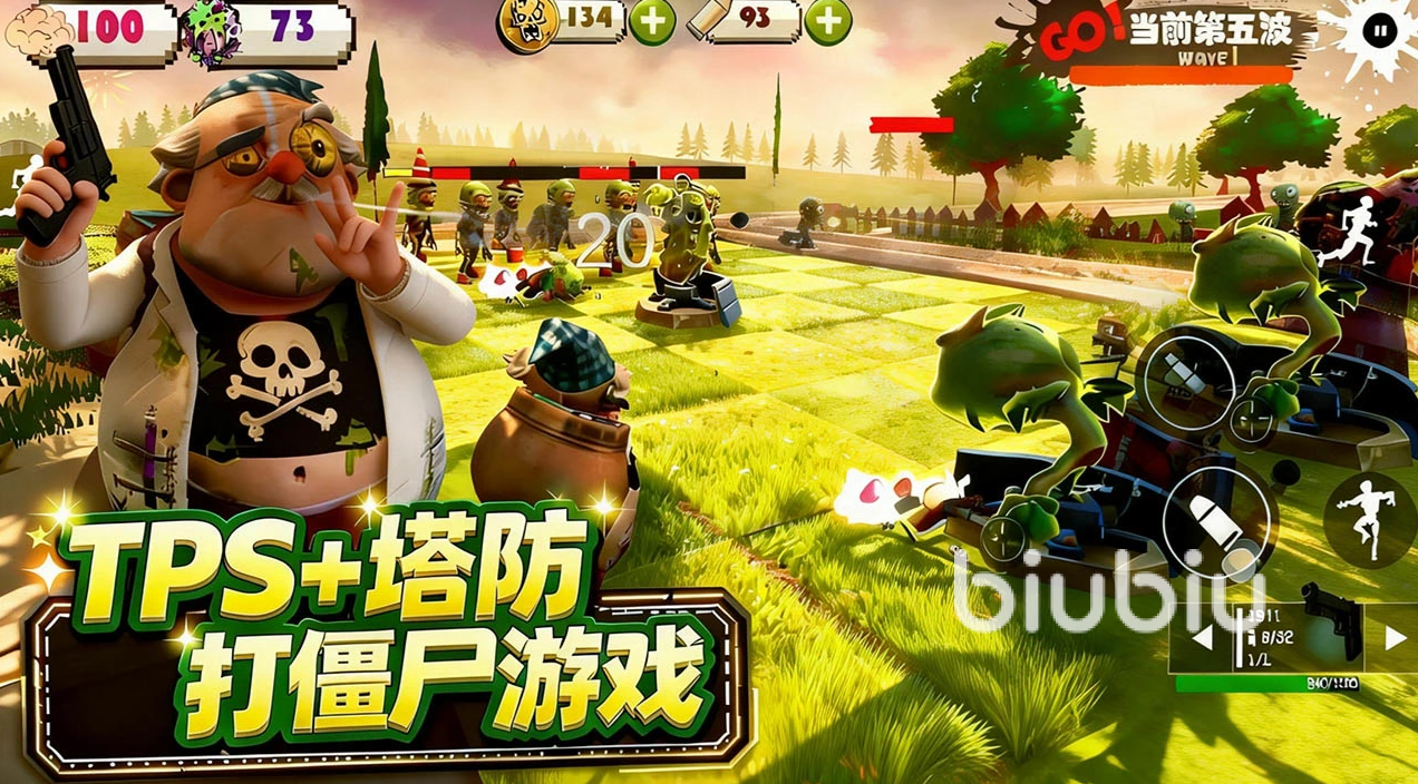这款作品突破传统塔防单一体验,实现策略布防与实时射击双线并行。玩家既可通过种植向日葵、豌豆射手、樱桃炸弹等不同功能植物构建静态防线,也能随时切换至第三人称视角,持枪进入战场,依靠走位规避伤害、精准点射关键目标,达成战术协同。