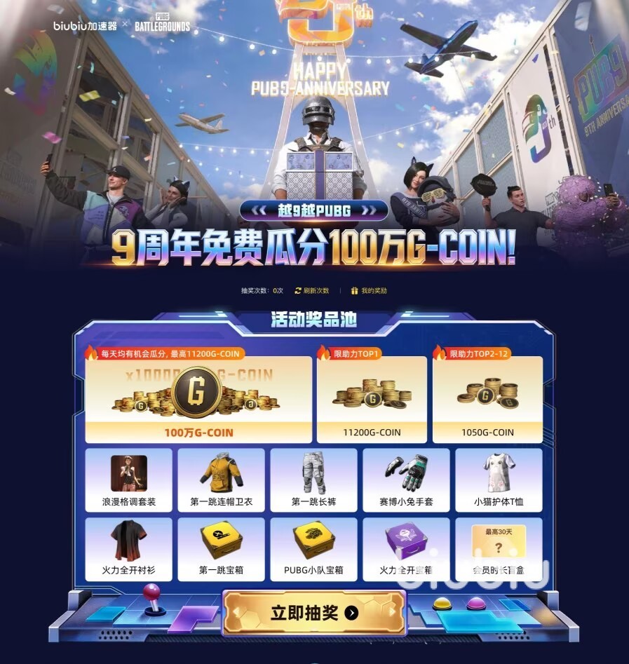 依托覆盖全球的分布式节点网络与智能动态选路技术,biubiu可自动规避公网拥塞路径及地理距离导致的固有延迟,确保操作指令毫秒级抵达游戏服务器。在3月11日至4月5日《绝地求生》九周年活动期间,biubiu同步上线免费瓜分100万G-COIN福利计划,助力玩家在稳定低延迟环境中畅享庆典内容。