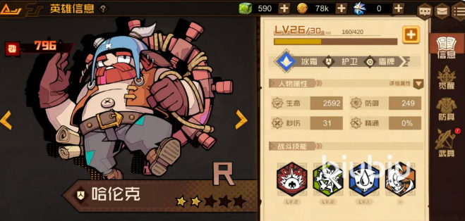 前排坦克需兼具生存性与功能性。哈伦克作为护盾专精型坦克,技能组高度聚焦于护盾生成与维持:被动可周期性为自己附加护盾,大招不仅造成范围眩晕(持续3秒),还同步施加寒冰效果,显著强化控场连贯性。但其大招存在攻击距离限制,面对远程集火单位时需配合队友拉扯或走位规避短板,仍属冰系阵容首选前排之一。