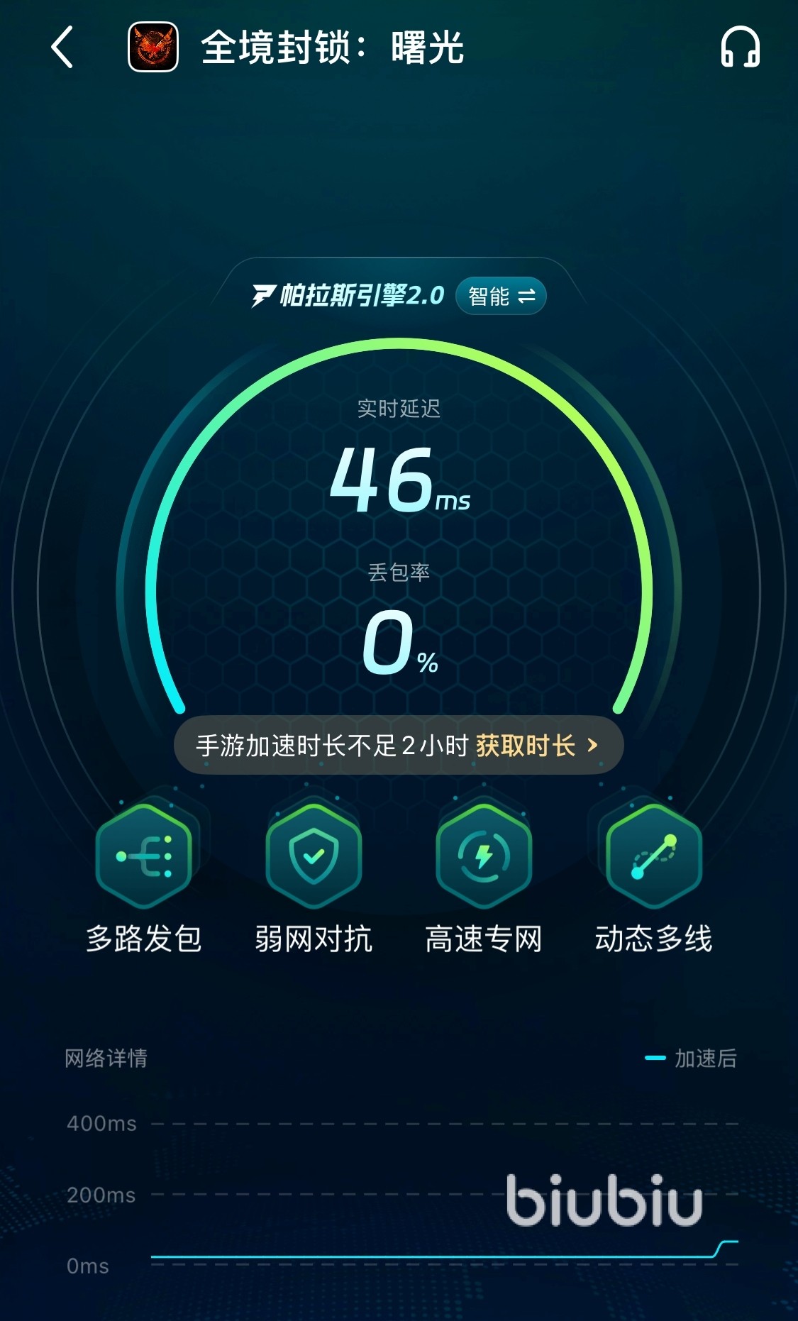 除了丰富的福利之外,biubiu加速器的速度也十分快,加速时玩家可以随时查看后台的提速数据,网络波动会立刻清晰地显示出来。由于采用了先进的加速节点技术,数据延迟一般在50毫秒以下,没有丢包现象。即使本地网络条件不好,也不会出现系统因为不能重发数据包而造成传输中断的情况,保证玩家可以享受到流畅的游戏体验,因此,偏远地区或者使用校园网的同学也能享受到游戏的乐趣。