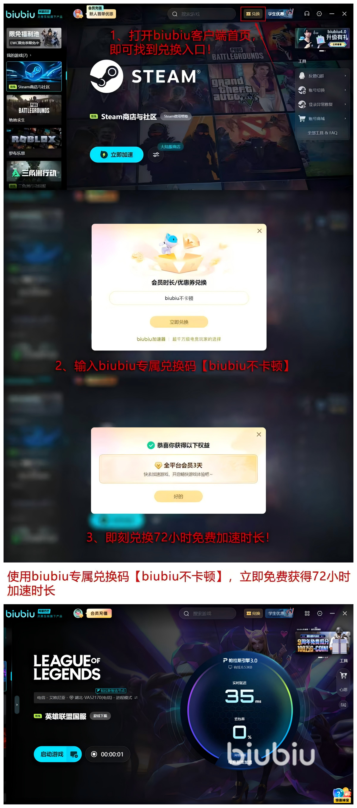 各位还能知道一下【biubiu不卡顿】口令,这个口令很有用,赠送各位72小时的会员,新人用户的24小时也能叠加,也就是说总计能够获得96小时的加速时间,时间方面异常的充足,保证能够为各位带来无与伦比的加速体验。